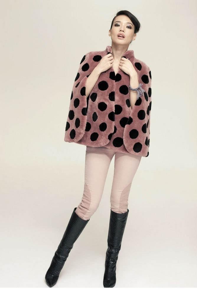 波点轻舞绽笑颜舒淇皮草写真展俏皮魅力