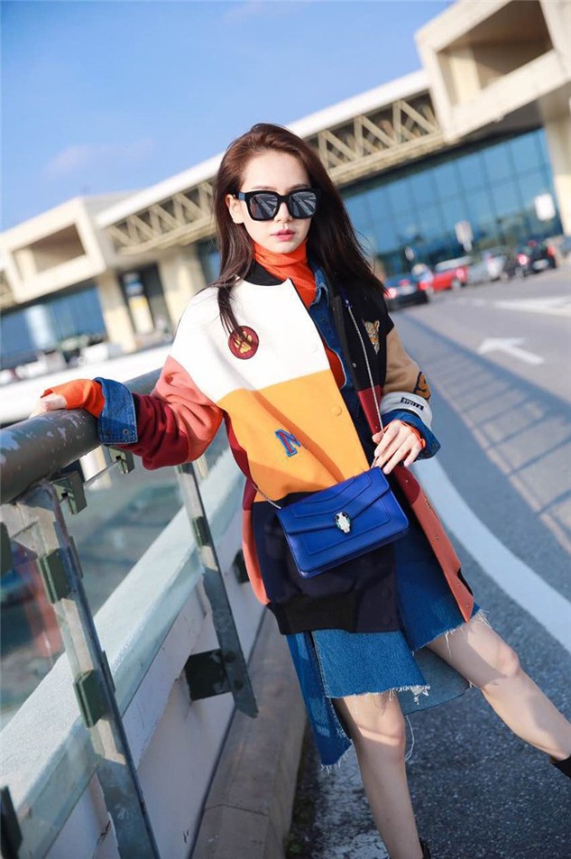 戚薇初秋元气机场秀 叠穿演绎十八岁少女感