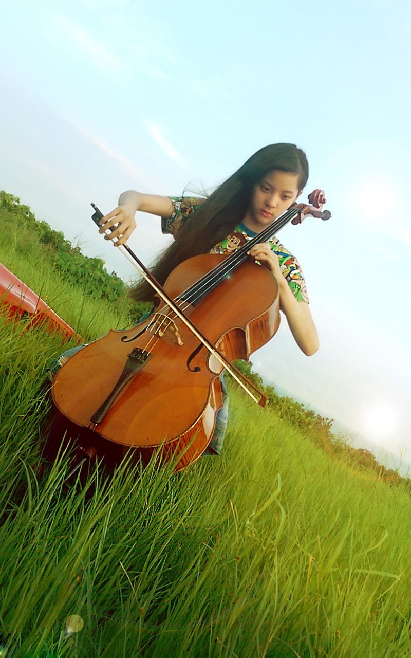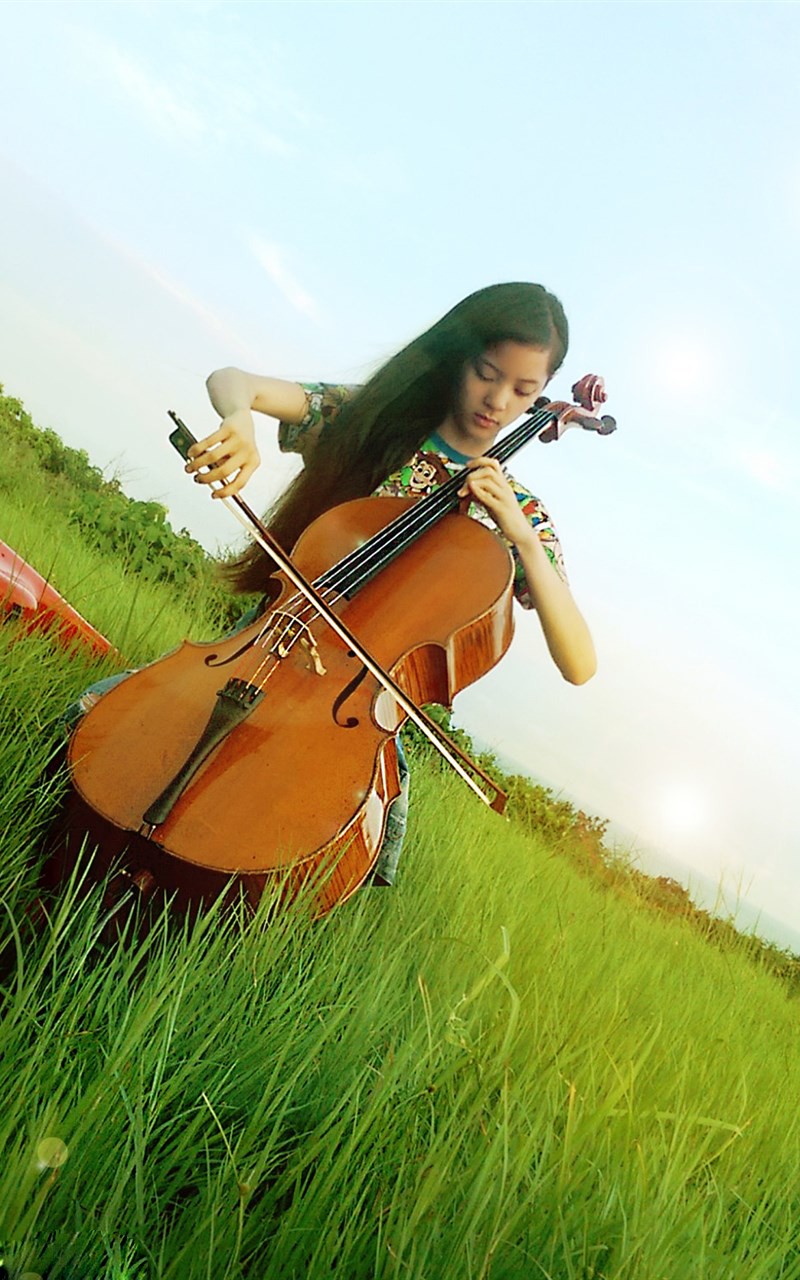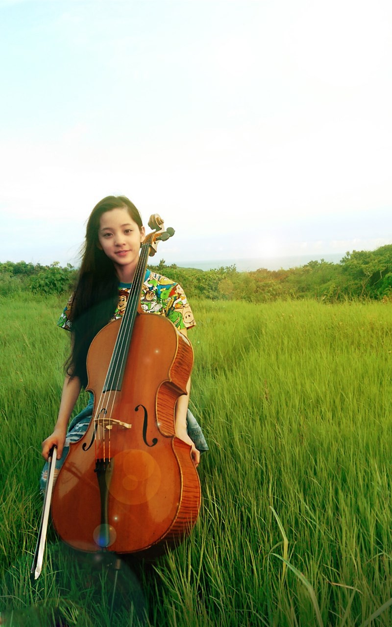 写真中,欧阳娜娜置身于一片绿意盎然的自然环境中。她或坐或立于草地之上,身边是她最亲密的伙伴——大提琴。这不仅仅是简单的场景拍摄,更像是一场“大自然与音乐的完美结合”。微风拂过,带起她的发丝与衣角,画面灵动而富有生机。自出道以来,欧阳娜娜就被誉为“最小独奏家”,其大提琴演奏家的身份始终是她最鲜明的标签之一。这组写真正是抓住了这一核心,将乐器从庄严的音乐厅舞台,搬到了广阔而自由的天地之间,让音乐回归到最本真的状态。