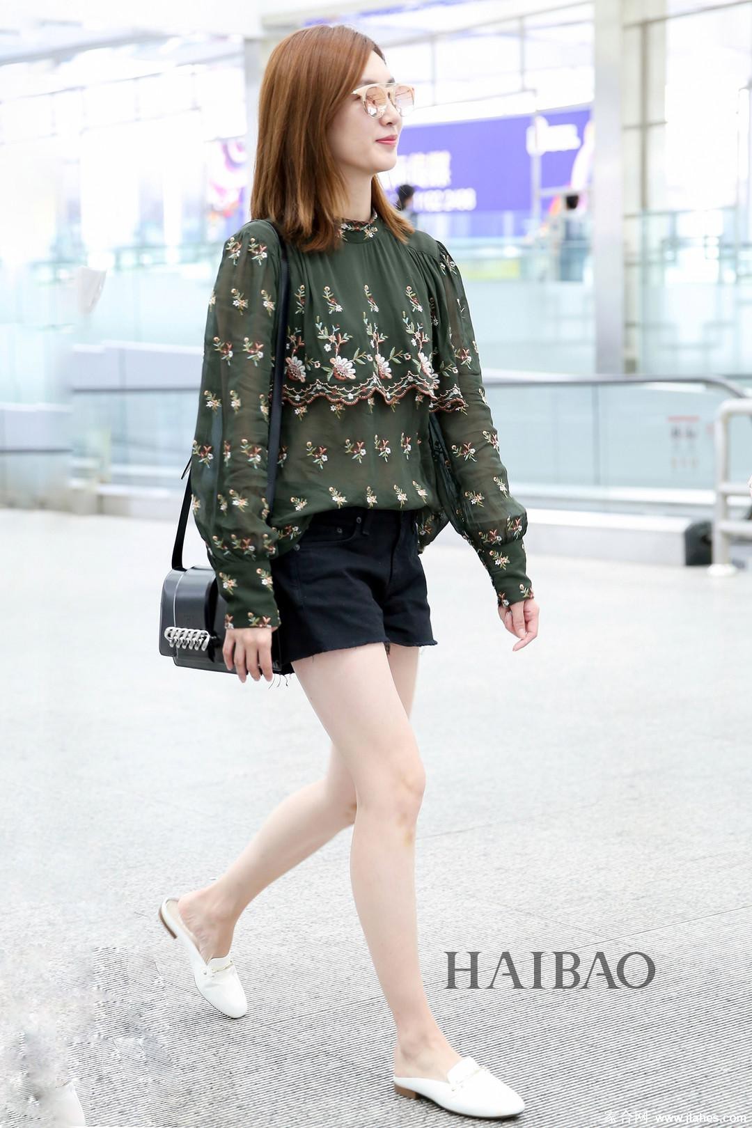 江疏影黑丝短裙时尚生活照展现优雅魅力