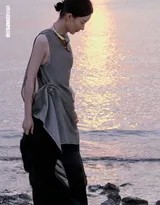 在镜头的捕捉下,赵丽颖展现出多重的状态。既有身着飘逸长裙,在林间小径漫步的仙气与灵动;也有静坐于湖畔,眼神放空,沉浸于自我世界的静谧与疏离;还有特写镜头下,那细腻肌肤与礼服质感交织所传递的极致温柔与高级感。她的情绪表达含蓄而富有层次,没有夸张的肢体与表情,却通过细微的眼神和姿态,将“轻盐系”那份淡然而坚定的力量感传递得淋漓尽致。