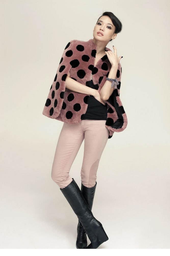 波点轻舞绽笑颜舒淇皮草写真展俏皮魅力