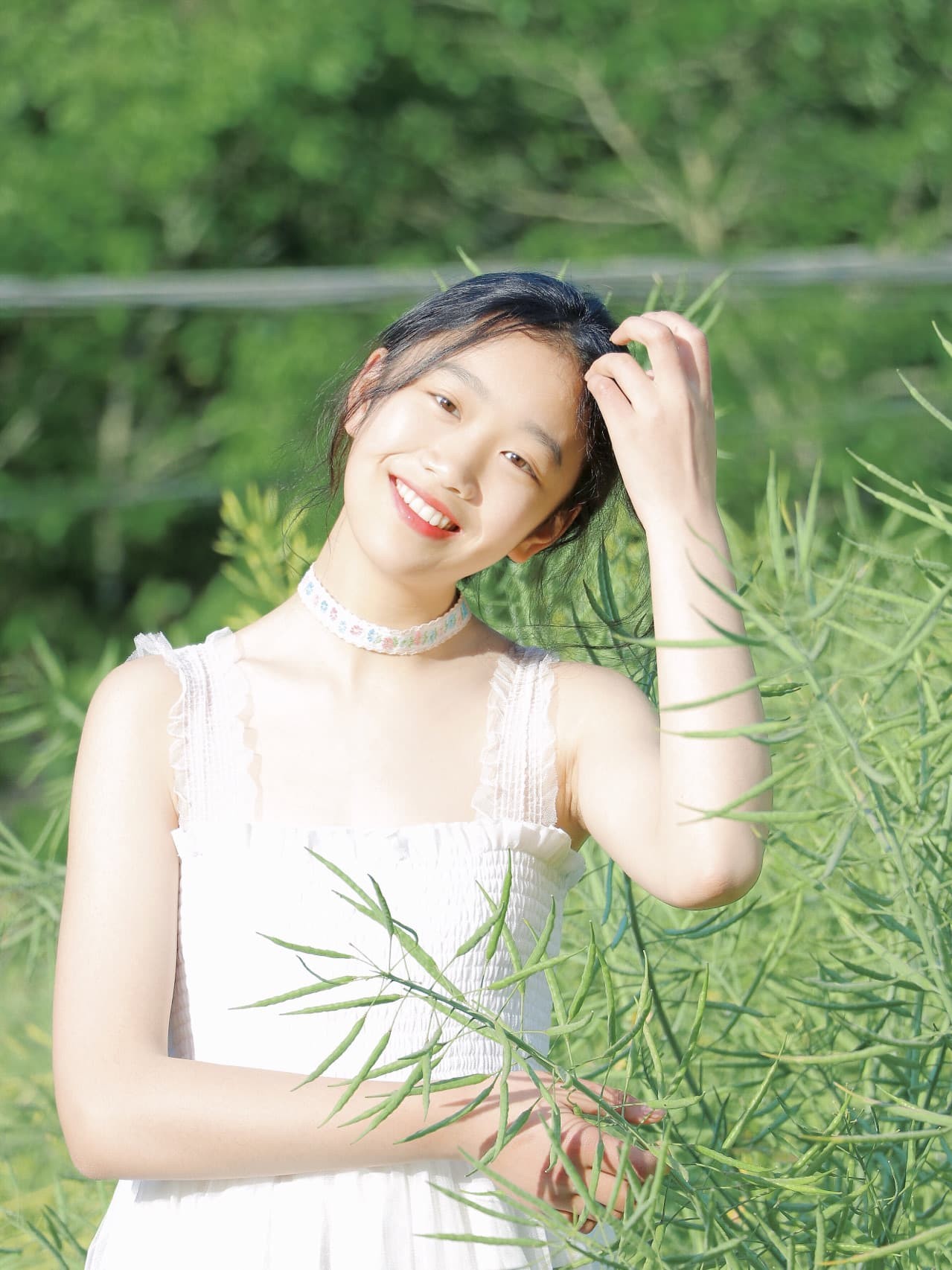 倚靠而立,甜笑嫣然